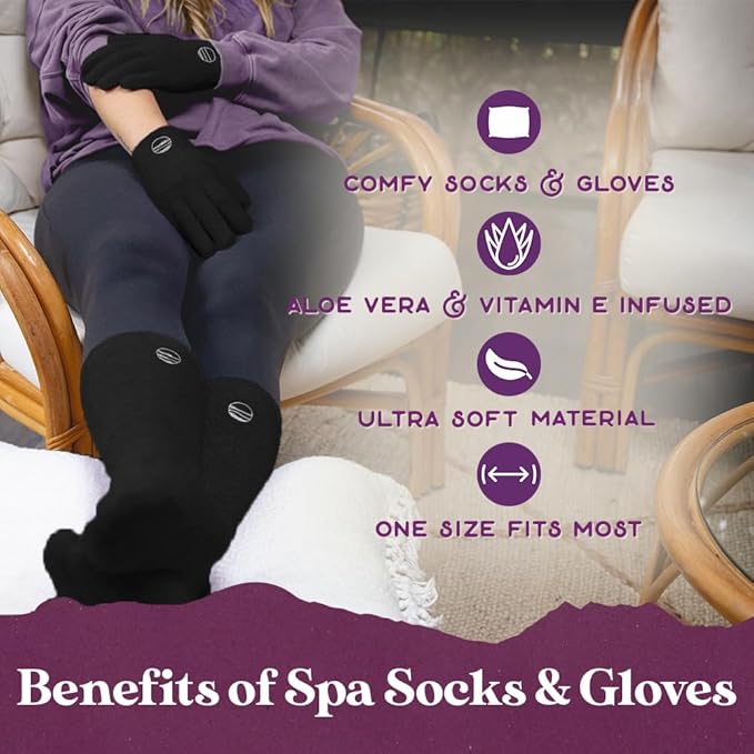 Purple Canyon Moisturizing Socks and Gloves Set | Black Fuzzy Socks and Gloves with Aloe and Vitamin E for Women | Women's Gifts for Self-Care