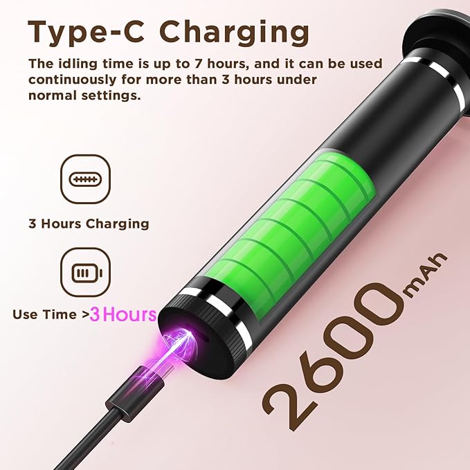 - ใ๐๐๐๐๐ฆ๐๐ก ๐๐๐๐ก๐๐ซ๐ ๐๐๐๐ฅ๐ ๐๐๐ญ๐ญ๐๐ซ๐ฒใ Our cordless electric foot file is equipped with a 2600mAh large capacity battery, which can run for up to 7 hours after only 3 hours of charging. No more trouble with cables, more convenient to use. The LED display helps you monitor battery power and speed level, ensuring that you are always in control