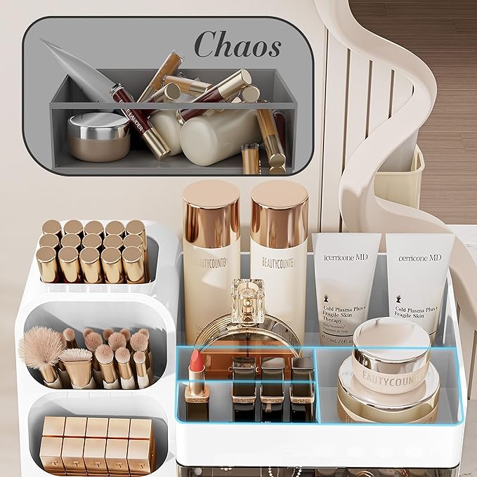 - No Assembly Required: Ready to use right out of the box. Simply place it on your bathroom vanity or dressing table for instant organization and storage. Designed with a non-slip bottom to keep the bathroom organizer stability on smooth surfaces