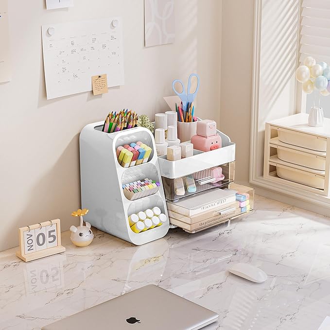- Spacious Drawers with Handles: 2 large transparent drawers provide ample storage for makeup palettes and beauty essentials. The clear design lets you quickly find what you need, keeping your makeup vanity or bathroom counter clutter-free and organized