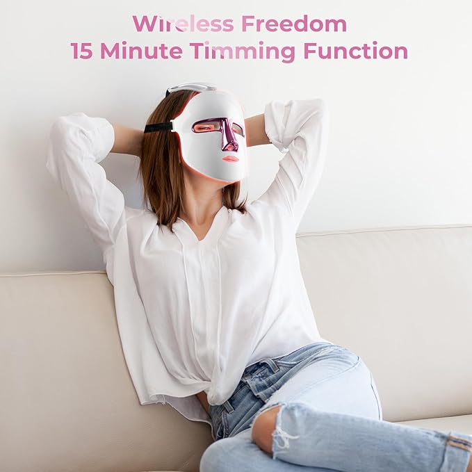 7-1 Colors Red Light Mask for Face, Cordless Red Light Face Mask for Home Use, Ergonomic Design, Portable and Rechargeable