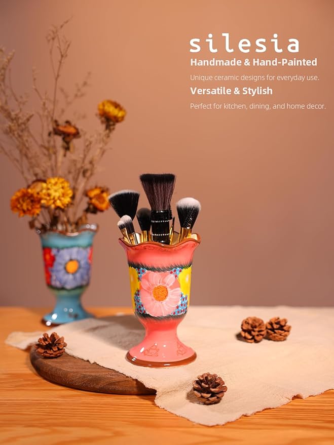 - Artistic Handmade and Hand-Painted Design: Each makeup brush holder is meticulously handmade and hand-painted with intricate patterns and vibrant colors, making every piece unique. Its artistic appeal elevates the decor of your vanity, bathroom, or desk