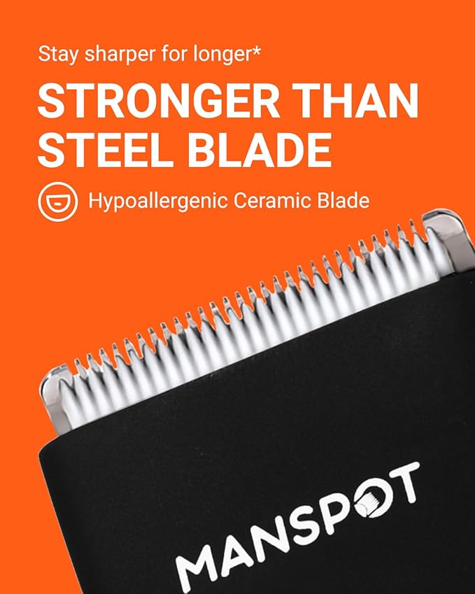 - Zero Stubble, Total Confidence: MANSPOT body hair trimmer redefines body care with its 2-in-1 grooming system. The Ceramic Blade System glides smoothly through chest hair, underarm areas, and below-the-belt zones. The Skin-Sense Foil Shaver System erases every last shadow of stubble with aerospace-grade titanium foils. Say goodbye to irritation and burns forever!