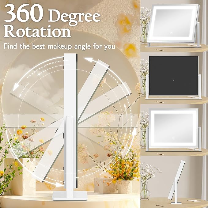 - 【360° Rotation & Stable Aluminum Frame】This vanity mirror is oversized at 16''x12'' to clearly display your entire face, with easy 360° swivel adjustment, ideal for makeup, skincare and hair styling. Crafted with a robust aluminum frame, the mirror provides excellent stability,effectively preventing tipping.