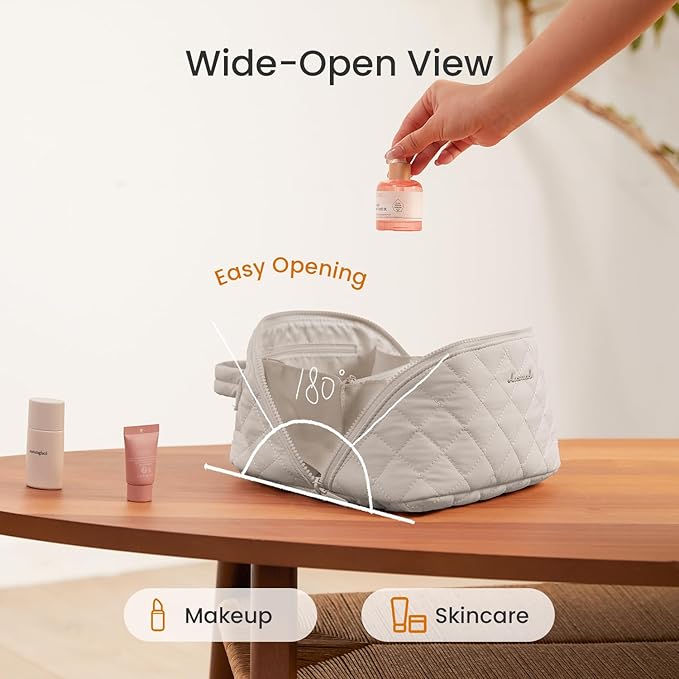 - Triple-Proof Interior: Featuring SGS-certified functional lining, the interior resists leaks, stains, and unwanted odors. Safely store liquid serums, loose powders, and makeup brushes without worrying about spills or dampness – ideal as a travel toiletry bag for women.
