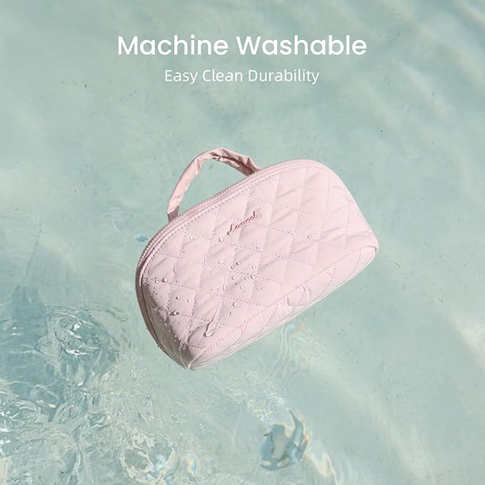 - Puffy&Machine-Washable Fabric: Crafted from waterproof cloud-soft puffer material, this cosmetic travel bag combines durability with style. The crush-resistant padding protects fragile items, while the machine-washable fabric ensures effortless cleaning. Lightweight yet structured, it stands upright on countertops.