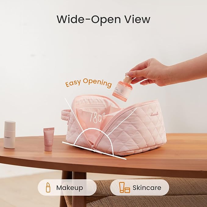 - Triple-Proof Interior: Featuring SGS-certified functional lining, the interior resists leaks, stains, and unwanted odors. Safely store liquid serums, loose powders, and makeup brushes without worrying about spills or dampness – ideal as a travel toiletry bag for women.
