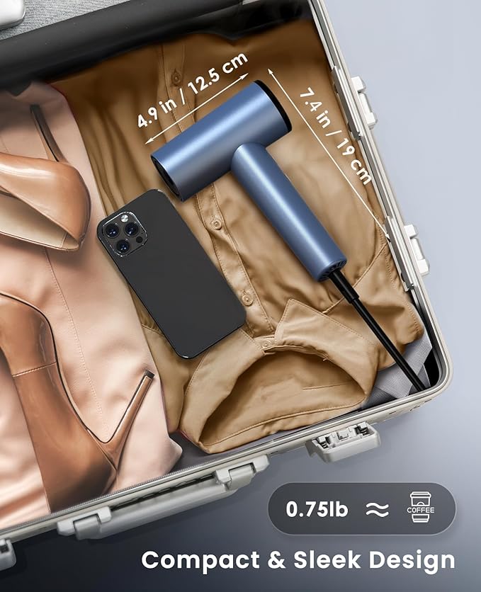 - Effortless Portability & Comfort: Weighing just 0.75 lb, this hair blow dryer is designed for comfort, reducing arm strain during extended use. Its compact size makes it ultra-portable, giving you the freedom to achieve salon-quality hair on-the-go, whenever you need a quick touch-up