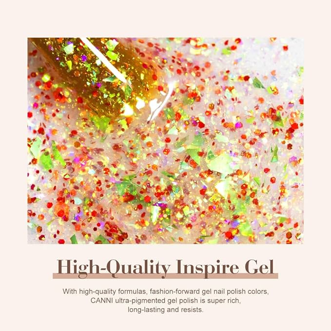 CANNI 8 Pcs 9 ML Glitter Gel Nail Polish Set, Shimmer Sparkly Red Shiny Pink Yellow Purple Blue Colors Gel Polish Kit Soak Off Led Nail Art Manicure Salon DIY