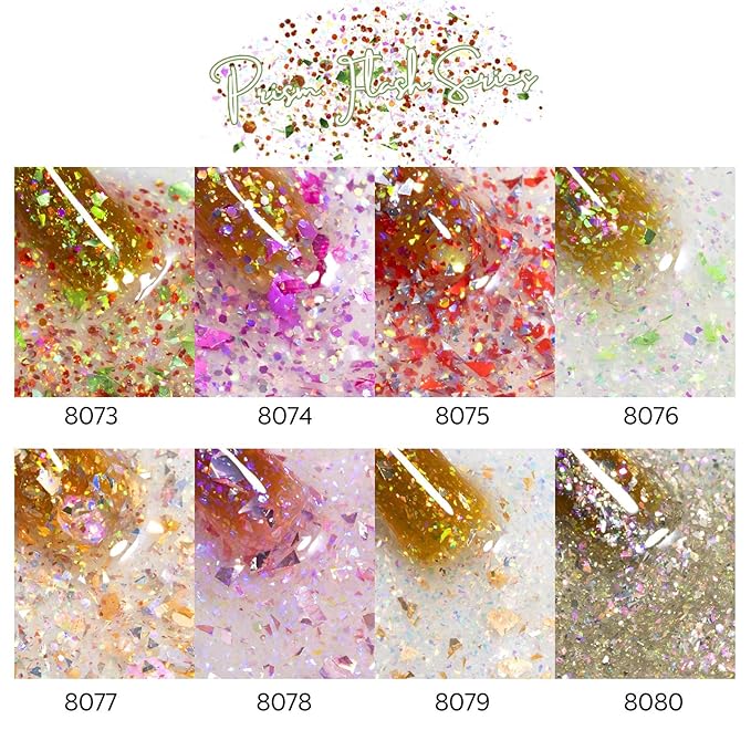 - 9 Ml x 8 Pcs Variety: Includes 8 vibrant colors in 9ml bottles, each infused with glitter, providing a versatile selection for various styles and preferences