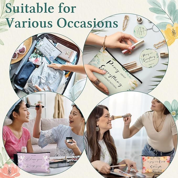 - Adorned with Verses: each item in the package, be it the makeup bags, mini-mirrors, or keychains, is beautifully adorned with inspiring Bible verses or Christian themes; This thoughtful design will consistently reinforce your faith and serve as a constant reminder of God's love and mercy