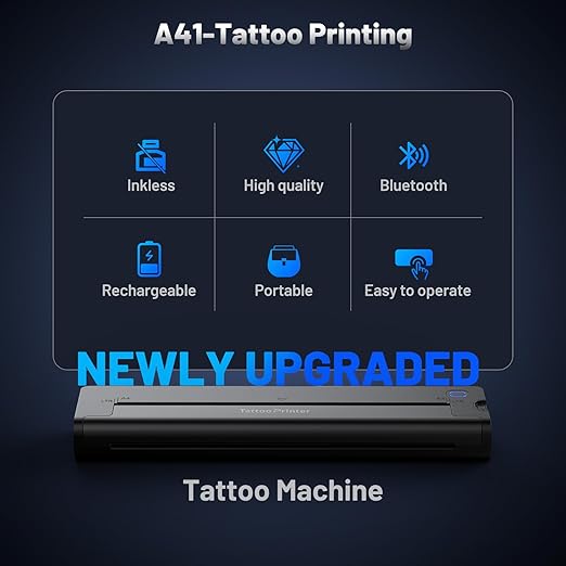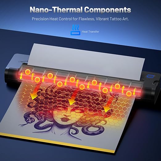 - 【Professional-Grade Precision with Upgraded Nano Stencil Printer】The A41 Tattoo Transfer Printer features an advanced nano thermal element that delivers 200% faster response time compared to traditional models. This ensures ultra-precise, high-definition prints with consistent clarity and even shading, perfect for both intricate designs and bold outlines. Whether you're a seasoned tattoo artist or a beginner, this tattoo stencil printer guarantees flawless results every time.