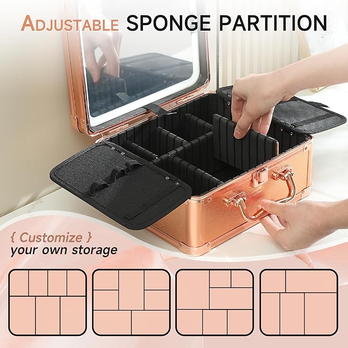 - Multifunctional Storage Solution:With 6 detachable EVA partitions and 2 brush storage boards, this portable vanity offers customizable storage space for all your makeup essentials. The shock-resistant sponge pads ensure items stay protected, while the waterproof partitions make cleaning effortless.