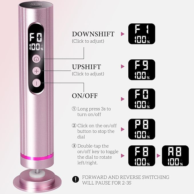 - How To Use:Ranrose electric callus remover for feet long press the open key 3S to start, at this time, "F0" is displayed, you need to press “+”, “-” to adjust speed. After starting, if you want to change the direction of operation, double click the key, the device will stop for 2-3 seconds and then change the direction. In the process of use, if you need to pause, you can short press the open key, no need to shut down and start again, short press again to resume use