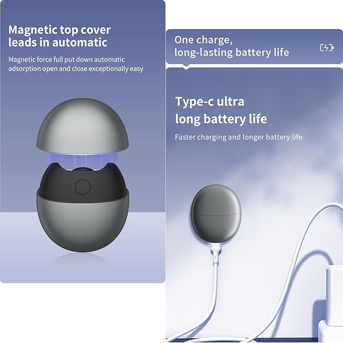 - 🔒 Magnetic Cover & Quiet Operation: Comes with a magnetic cover to prevent accidental activation and protect the blade. The low-noise design ensures quiet operation, perfect for trimming your baby’s nails during sleep without disturbing them