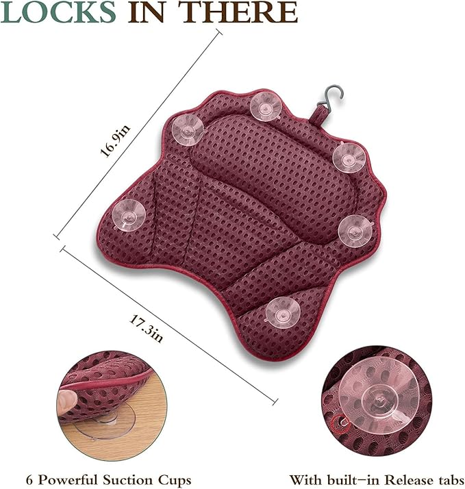 Bath Pillow RUVINCE Ergonomic Luxury Bathtub Pillow with Head,Neck, Shoulder and Back Support, 4D Bath Pillows for tub with 6 Powerful Suction Cups, Fits All Bathtub, Spa Tub, Hot Jacuzzi (Dark red)