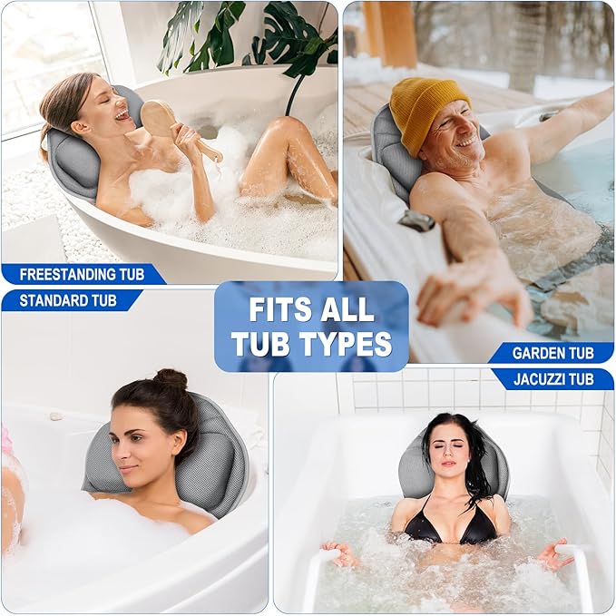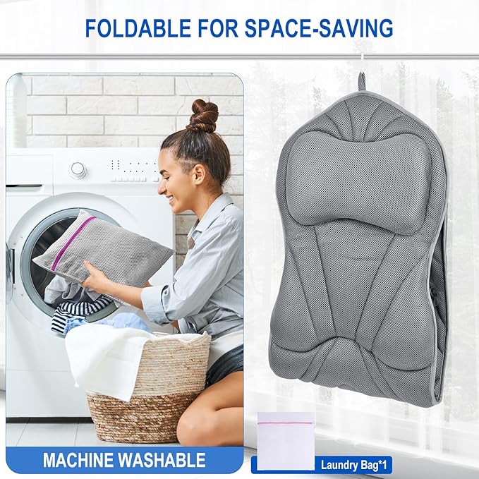- 【Easy Clean and Premium Quality】: Crafted with high-quality materials, our bath pillow is easy to clean and maintain. The 3D Air Mesh Technology allows quick drying, while the water-permeable and breathable fabric enhances durability.