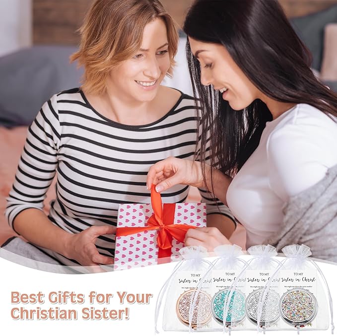 • Portable Size: the diameter of sisters in christ mirror is 7 cm / 2.76 inch, perfectly sized for purses, handbags, or travel bags, compact yet highly functional, while the sisters in christ card is 6.5 x 10 cm / 2.56 x 3.94 inch, and the mesh organza bag is 10 x 15 cm / 3.94 x 5.91 inch, enough to help you store these gifts, is a discreet reminder of your faith and sisterhood in Christ