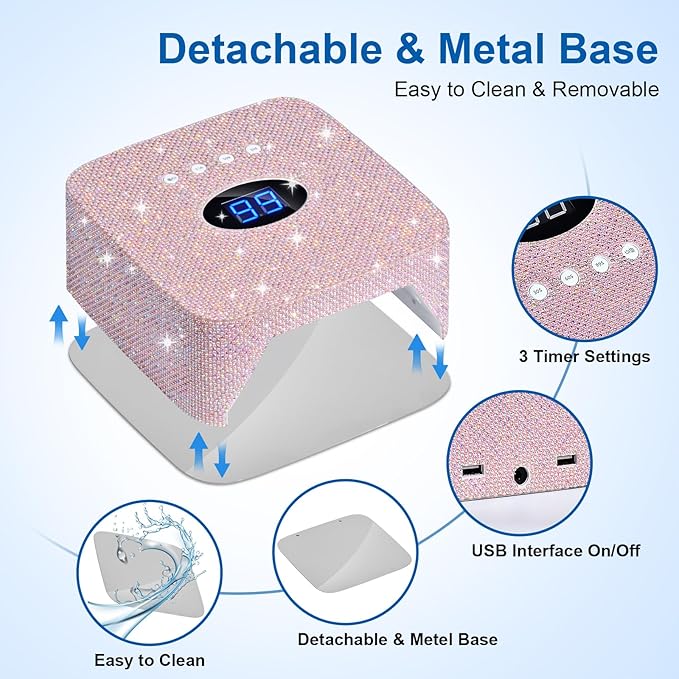 - 【For All Gel Polishes】The uv light for gel nails effectively cures all types of gel polishes, such as base coats,top coats,color gels,hard gels,poly gels,sculpting gels,gem gels, etc.
