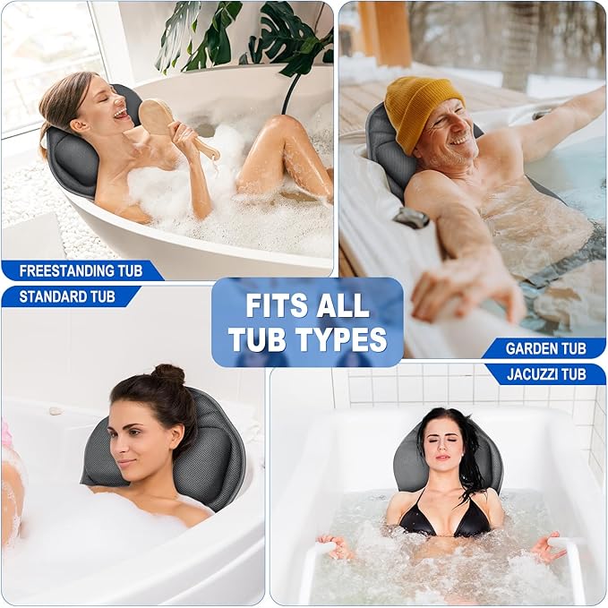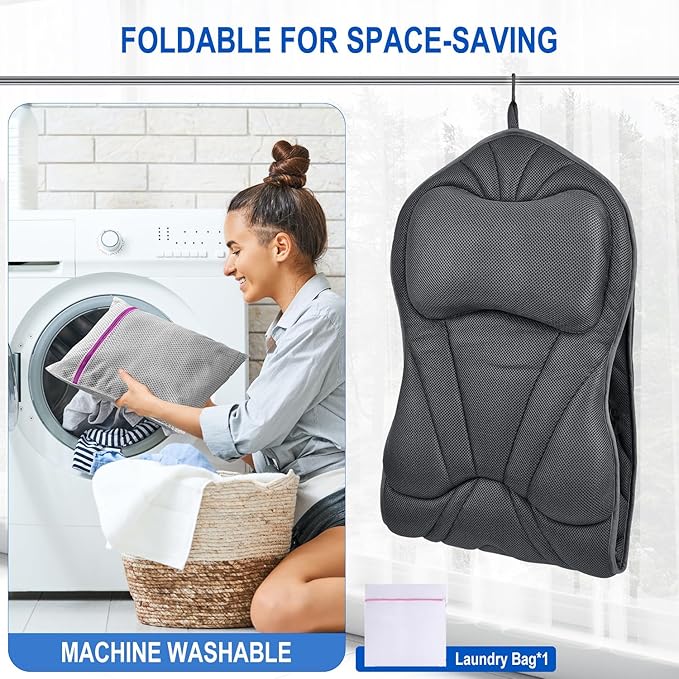 - 【Easy Clean and Premium Quality】: Crafted with high-quality materials, our bath pillow is easy to clean and maintain. The 3D Air Mesh Technology allows quick drying, while the water-permeable and breathable fabric enhances durability.