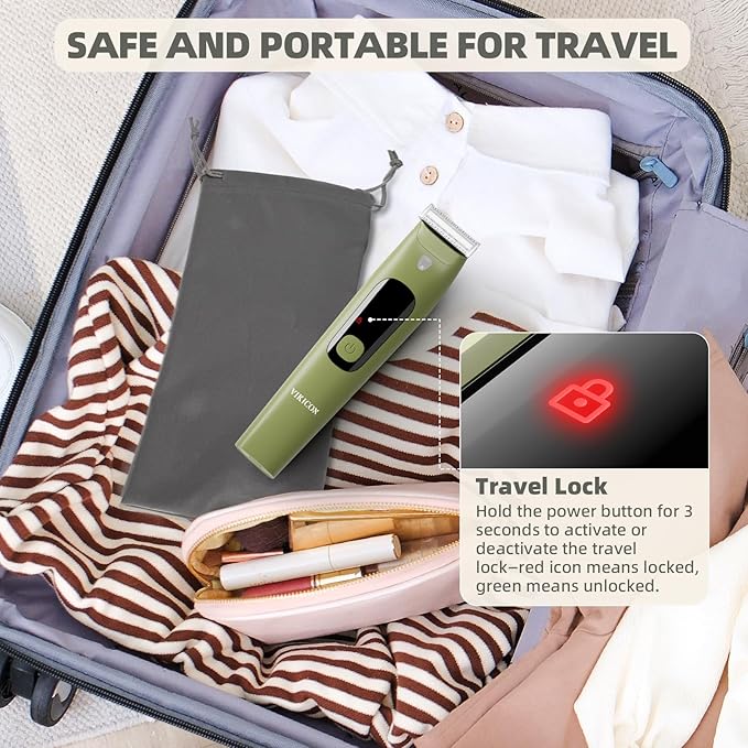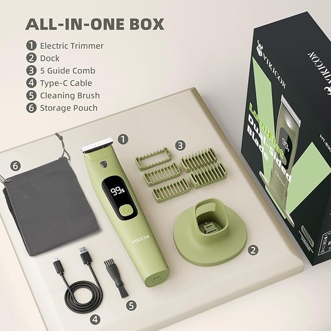 - See Clearly, Trim Precisely with LED Light: Built-in LED light improves visibility for accurate trimming in low-light bathrooms or while traveling. The digital display shows remaining power, so your pubic hair trimmer never stops unexpectedly.
