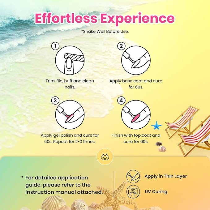 - - Beetles Uv Gel Nail Polish Kit Healthy & Easy Application: Nine gentle formula Ingredients make it safe and have low odor. With proper application, it lasts at least 3 weeks.