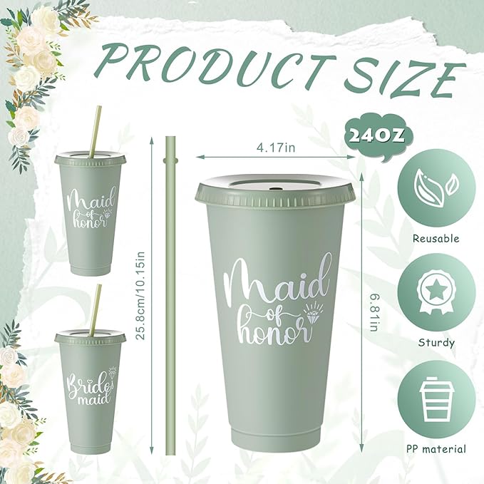 - Bridesmaid Proposal Gifts Set: you will receive 6 plastic straw cups 24oz, 6 satin scrunchies, 6 diamond ballpoint pens, 6 knot bracelets, 6 jewelry storage boxes, 6 makeup bags, 6 gift boxes with bows and ribbons, and 6 foldable greeting cards; These items are plentiful in number, touch what your needed for your bridesmaid boxes
