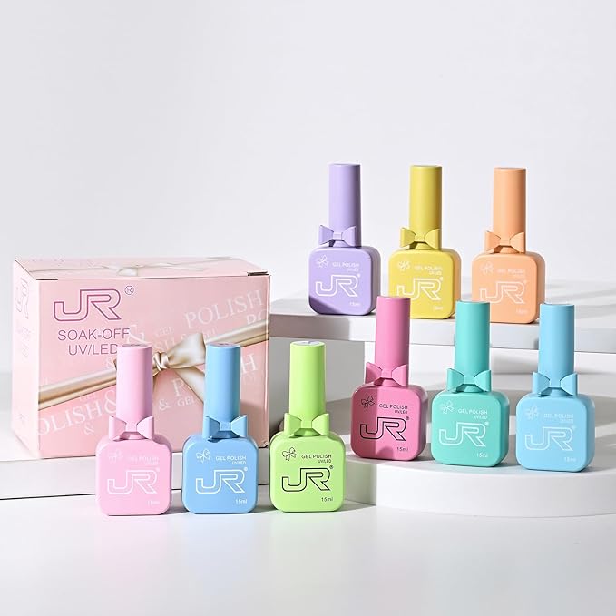 JR 9pcs 15ml gel nail polish set Including Red Pink Nude Gel Polish Kit UV LED Soak Off Polish Home DIY Gift D