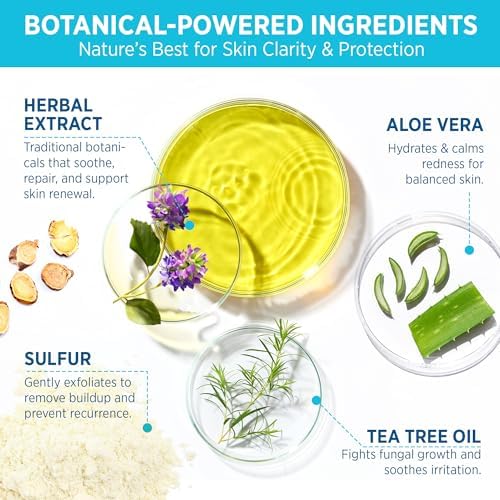 - Dermatologist-Inspired Care: Formulated with Tea Tree Oil, Sulfur, and mild herbal extracts, this bundle works to address fungal issues at the source while soothing redness and supporting skin recovery.