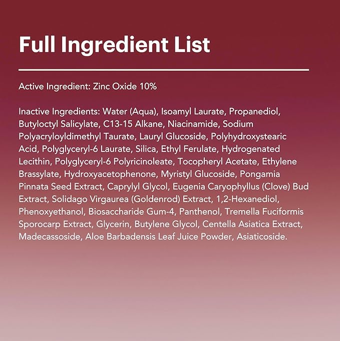 - [IDEAL FOR SENSITIVE SKIN] Featuring 10% Zinc Oxide, a gentle, naturally occurring mineral that reflects both UVA and UVB rays, providing a protective barrier without irritation or absorption. This FDA OTC registered sunscreen is gentle enough for even the most sensitive skin.