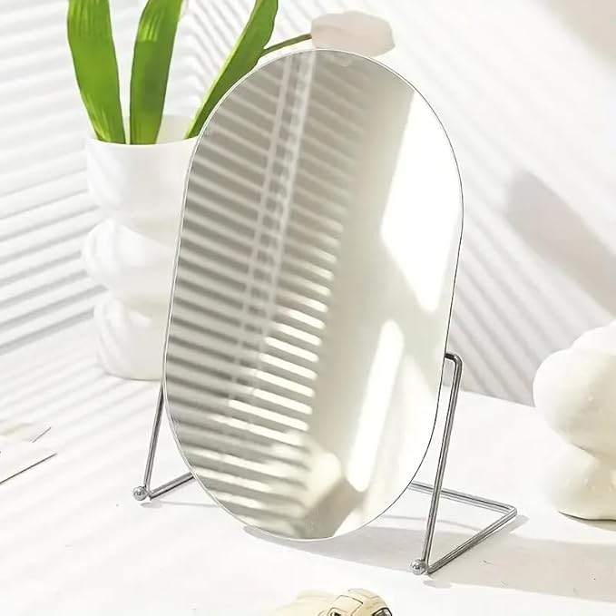 - CLASSIC DECORATIVE MIRROR: Frame of the desktop mirror is made of metal and spray painting art, not rust. Reliable quality.Vanity Mirror features a smooth HD Mirror, grinding carefully,which clearly reflects your beauty and will not deform.