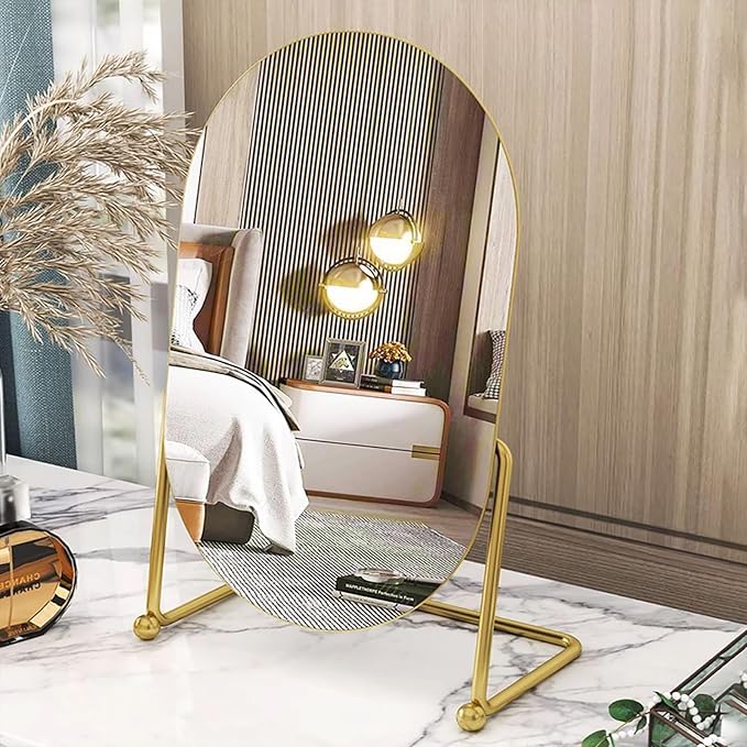 - CLASSIC DECORATIVE MIRROR: Frame of the desktop mirror is made of metal and spray painting art, not rust. Reliable quality.Vanity Mirror features a smooth HD Mirror, grinding carefully,which clearly reflects your beauty and will not deform.