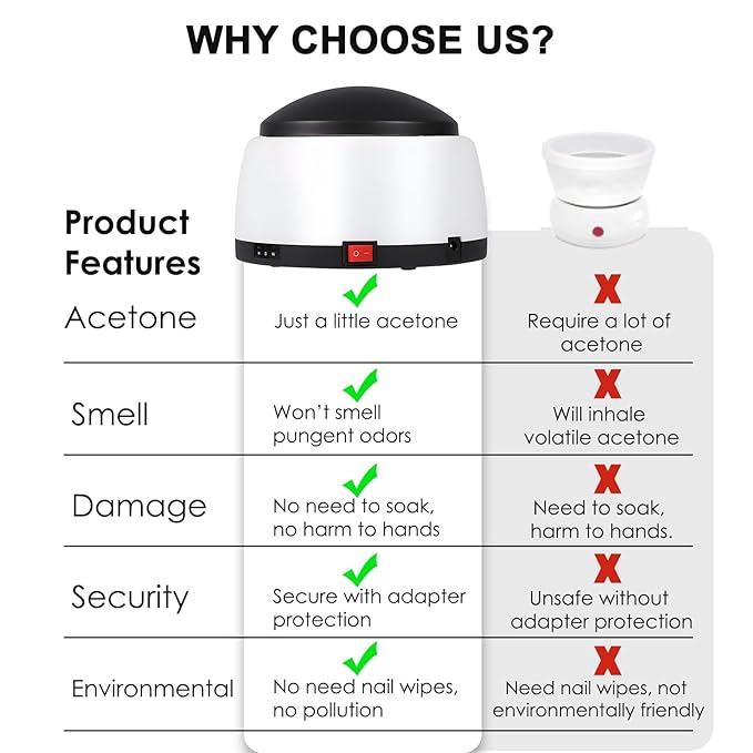 - SAFE AND HYGIENIC DESIGN: With our electric steam nail polish remover, your fingers do not need to touch the nail polish remover, ensuring a safe and hygienic nail care routine that is easier and more secure than traditional methods
