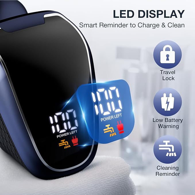 - Double Blade and Double Protective Net: Men’s bald head shaver uses double-layer durable blade to accurately capture long and short hairs, which are precise, sharp and safe. The double net provides protection and reduces irritation. The intelligent induction system effectively prevents hair pinching and brings you a comfortable and smooth shaving experience