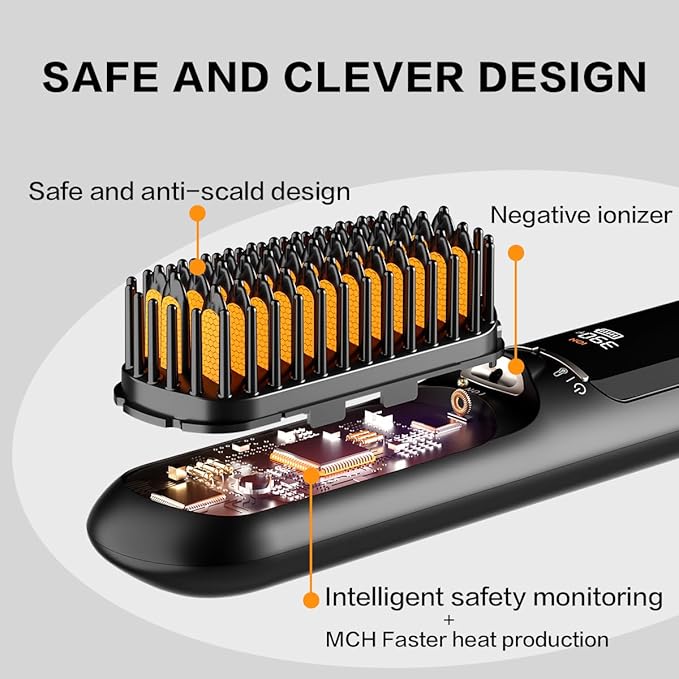 - Authoritative safety certification】Built-in intelligent dual power control system, set up with overcharge, overheating, overcurrent, short-circuit protection of a variety of commodities safety service life long, travel cordless hairbrush through, UL, CE, FCC, certification, UL, CE, FCC, safety certification, safe to use.
