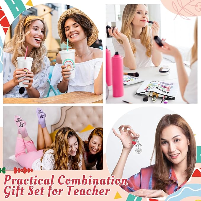 - Teachers Thank You Gift: the package contains 6 pcs teacher tumblers bulk with heartfelt messages, 6 pair socks for teachers, 6 pcs makeup bag for teachers bulk and 6 pcs teacher keychains bulk, a nice combination which makes teachers gifts, you can send for anyone who loving education, such as teachers of elementary, middle or high school