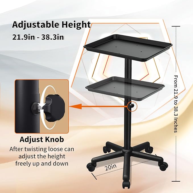 - 【Height-adjustable Tattoo Tray】You can adjust the height of the hair stylist tray to between 22 and 39 inches with the knob, according to your needs.