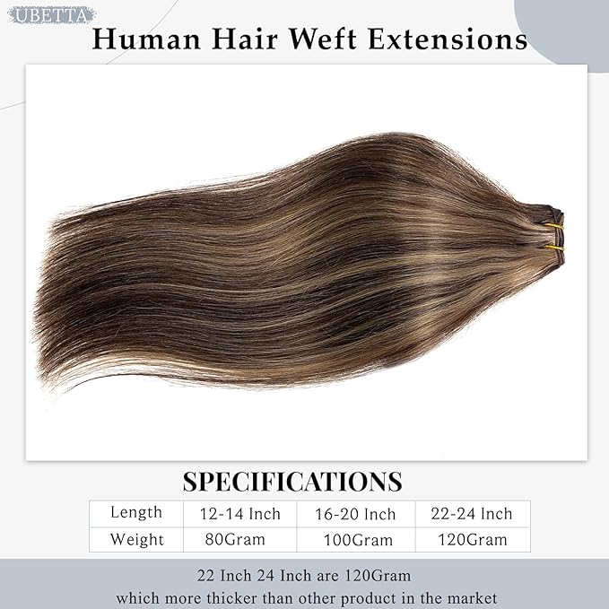 - 【Sew in Hair Extensions】--Ubetta sew in hair extensions real human hair made of 100% real virgin human hair, all cuticle aligned in one direction, soft, bouncy, natural hair volume with healthy hair end, can be blended naturally with any texture hair. Hair wefts sew in weave bundles human hair extensions used to increase hair volume and length to your hair, or add some ombre brown and blonde balayage highlights colors to your hair.