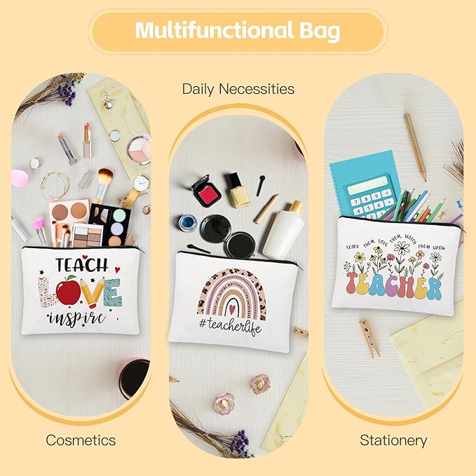- Teacher Themed Cosmetic Bag:This cosmetic bag measuring about 9inch*7inch is made of high quality cotton and canvas, and the zipper design ensures that the items inside will not fall out. This bag can be used as a makeup bag,pencil case,easy to hold pencils, toiletries, cosmetics and any other small items you want to put in your daily life