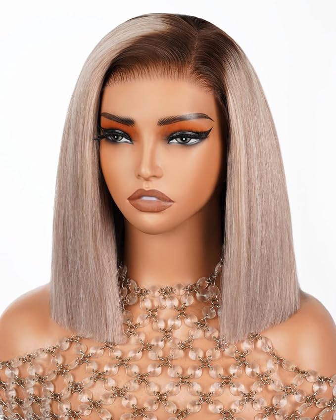 Arabella 20/Ash Blonde Bob Wig Human Hair 5x6 Wear and Go Glueless Wigs Human Hair 230% Density Ombre Straight Bob Wig Lace Front Wigs Pre Cut Lace Pre Bleached Knots(12inch, 5x6 Glueless Bob)