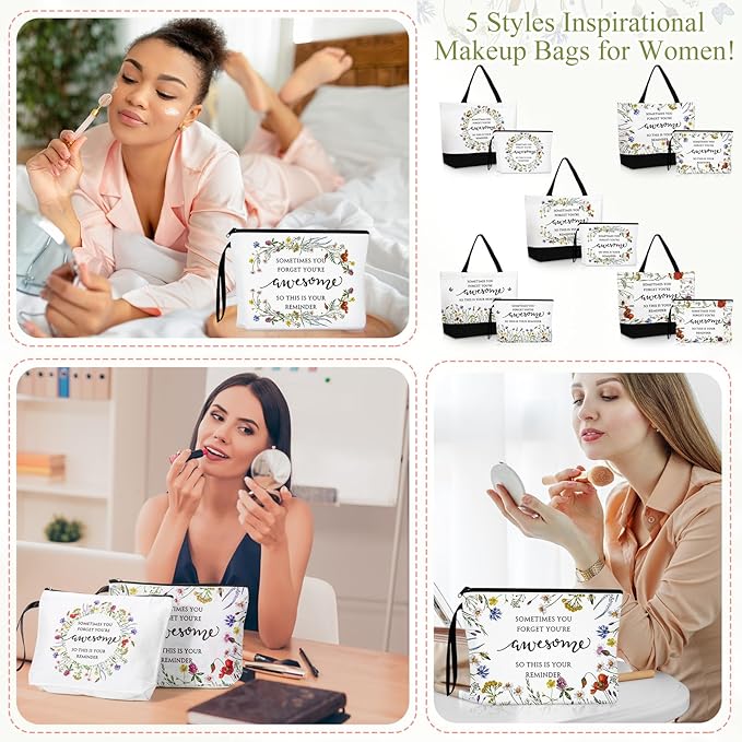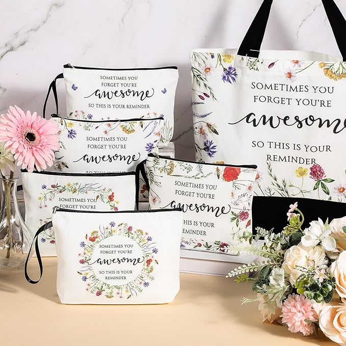 - Gifting Solution: whether it's a special event or a casual token of appreciation gifts, our package of 5 motivational tote bags and 5 canvas cosmetic makeup bags makes an ideal and thoughtful gift; Each bag features a wildflower theme with inspirational quote, that's sure to bring joy and motivation to your loved ones