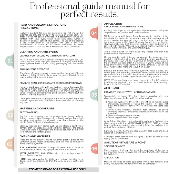 - PROFESSIONAL FORMULA: Specialized henna-based solution developed specifically for eyebrow application.