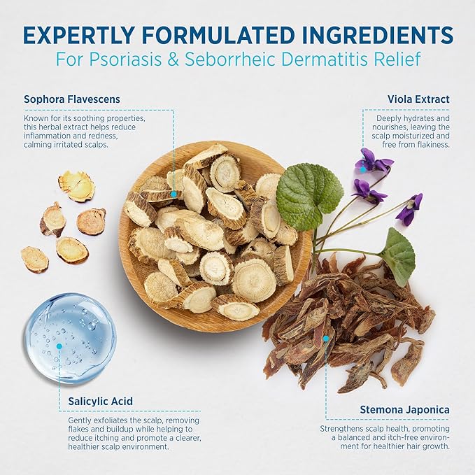 - Product Benefits : Comprehensive shampoo & conditioner set soothes scalp dermatitis, psoriasis, dandruff & itching fast. Comprehensive shampoo & conditioner set soothes scalp dermatitis, psoriasis, dandruff & itching fast.