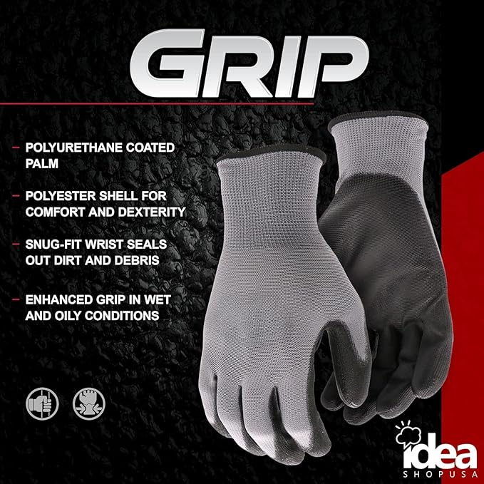 - 🧤 Durable, Versatile Gloves: Polyurethane-coated work gloves offer excellent resistance to water, oils, and chemicals—perfect for gardening, food prep, and DIY projects.