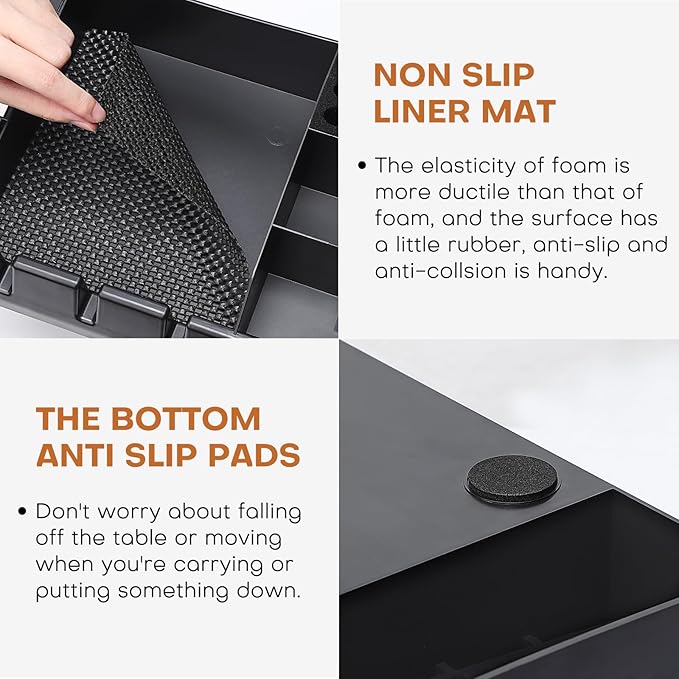 - 【Anti-skid & Easy to Clean】-- The bottom of the Barber Tray is designed with a non-slip liner so that your tools will not slide around while resting in the tray. It is a non-slip material, without being sticky, and removes for simple and easy cleaning whenever necessary