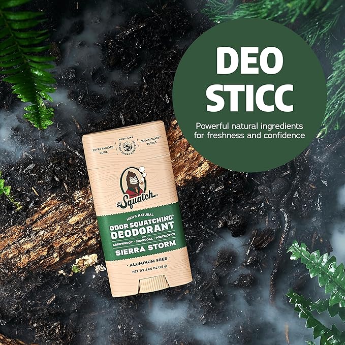 - BRAVE THE ELEMENTS WITH SIERRA STORM - Harness the power of the towering sequoias with the invigorating aroma of Sierra Storm. Infused with scents of eucalyptus, fresh pine, and juniper, keep your pits fresh while powerful natural ingredients like charcoal and arrowroot powder Squatch odor at the source.