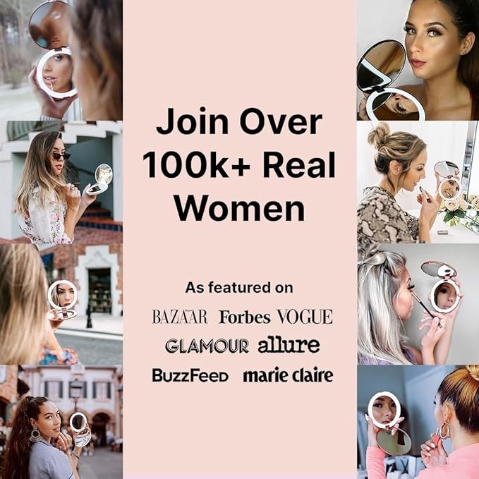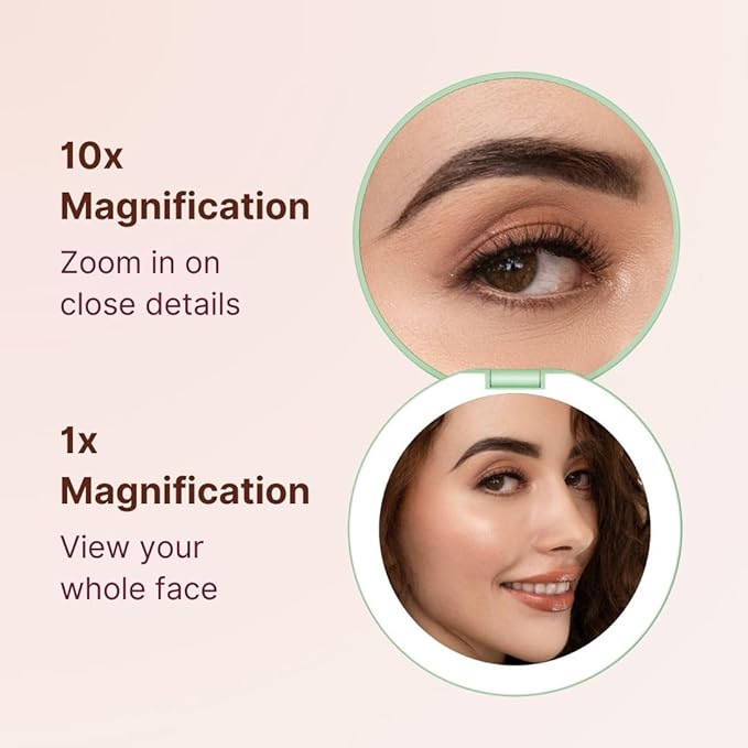 - Double-sided magnification (1x and 10x) so you can apply a full face of makeup, do a quick touch-up on the go, or focus on a detailed task like tweezing or inserting contact lenses