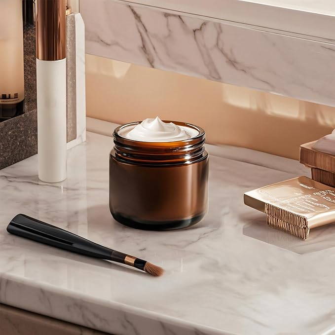 2 oz Amber Glass Jars with Lids,24 Pack 2oz Small Glass Jars with Inner Liners,2 Ounce Travel Jar for Cosmetics Container,Cream Lotion,Body Scrub