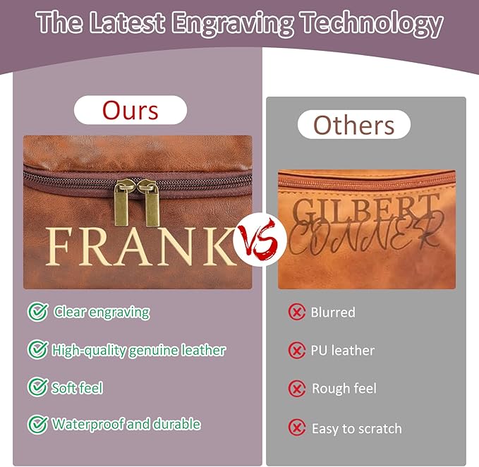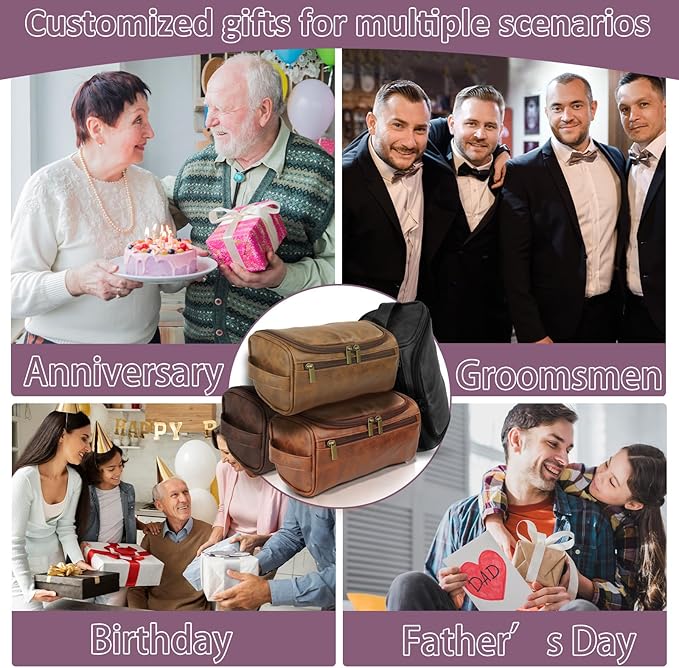 - 【Dual-Sided Custom Luxury】Craft a one-of-a-kind personalized gifts for men with dual-sided customize (top + front). Add names, monograms, or custom text for a bespoke touch. Handcrafted with reinforced stitching, this leather toiletry bag for men maintaining tailored sophistication for everyday essentials.