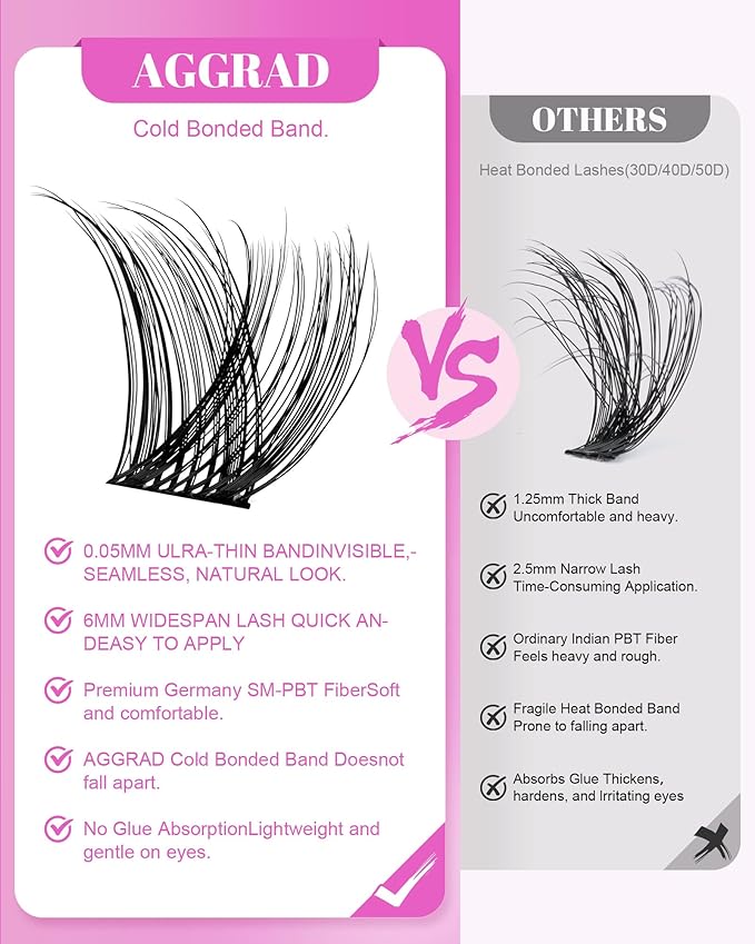 - Efficient Application with Fewer Clusters - Value-Packed: Achieve a full look with just 10-12 clusters per application thanks to our Wider Band Design; saves time and simplifies the process compared to 30D or 40D needed 20-28pcs. Each eye lashes pack includes 120 eye lash clusters, lash tweezers for eyelash extensions attached.
